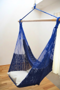 大きく広がるダークブルーのチェアハンモックです。