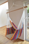 大きく広がる楽しい色合いのチェアハンモックです。