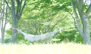 ハンモックの全長くらいの間隔の立ち木が2本あれば、そこがハンモック・ ポイント。