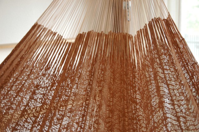 表面が非常になめらかで、ネップ(糸のかたまり)のない、高品質な綿糸で編まれたハンモックです。